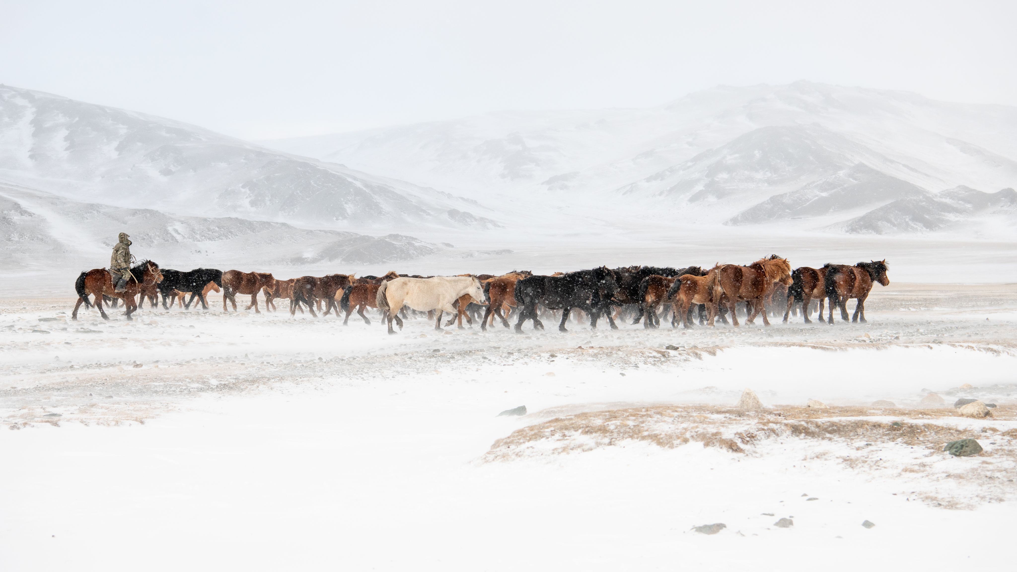 Marchogodd gyda llwythi ym mynyddoedd yr Altai ym Mongolia wrth ddysgu am helwyr tylluanod y Kazakh, y ceffylau, a’r bobl lled-nomadaidd sy’n byw yno.