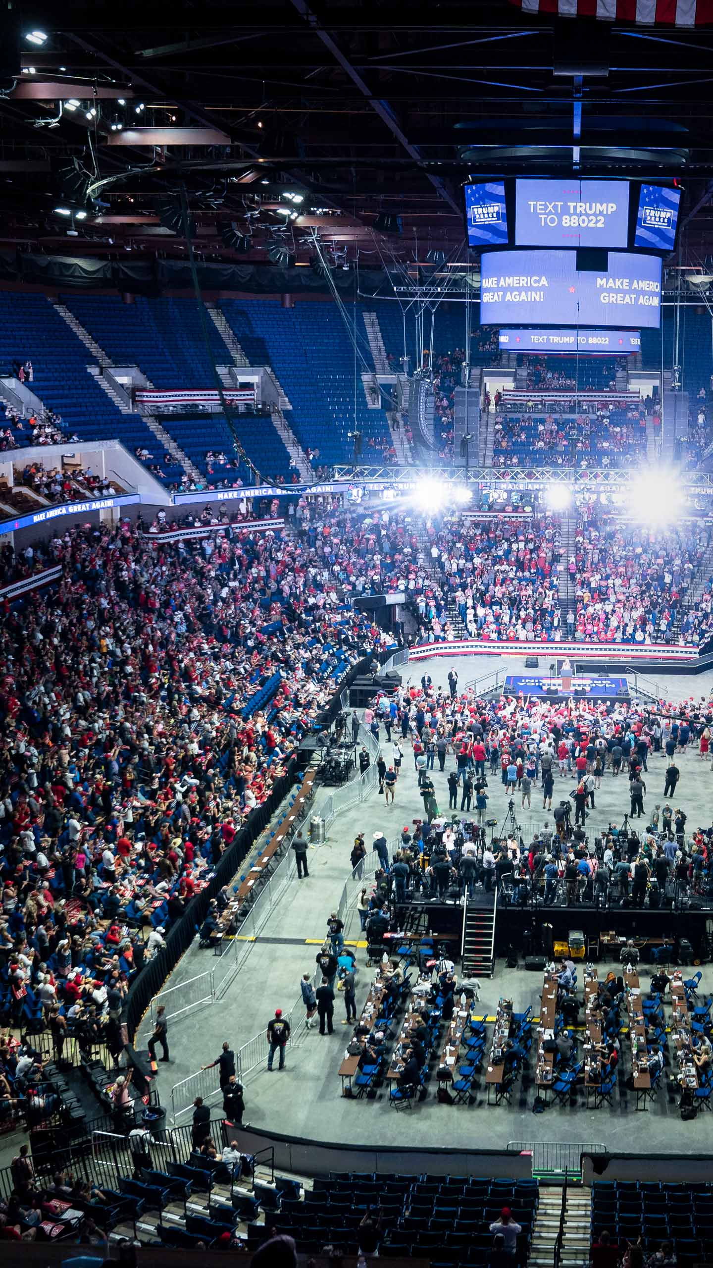Trump was beaming when he went on stage. The fire marshal later confirmed there were 6,200 people inside the arena when the main act came out. Or to put it another way - it was two-thirds empty. Or to put it another way still, that was a smaller number than Sha Na Na attracted, The Pips (without Gladys), Loverboy and The West Virginia Touring Company performing La Traviata.