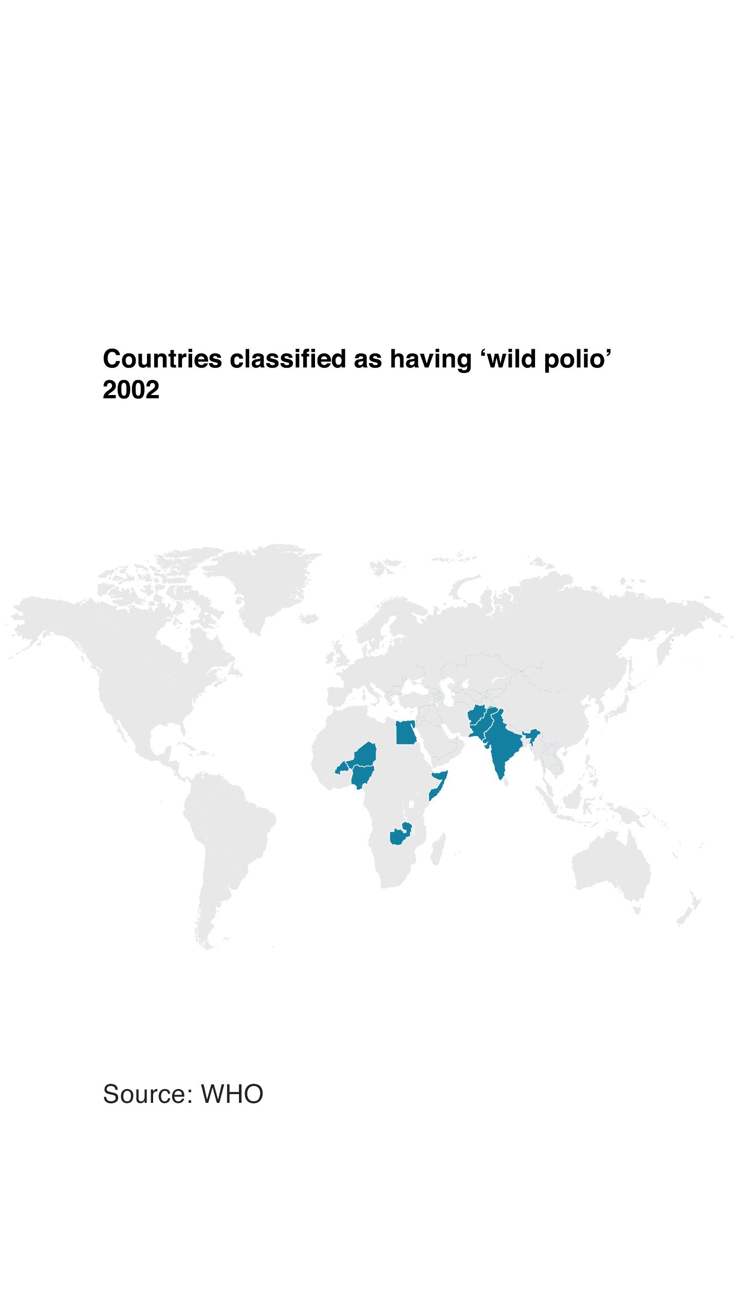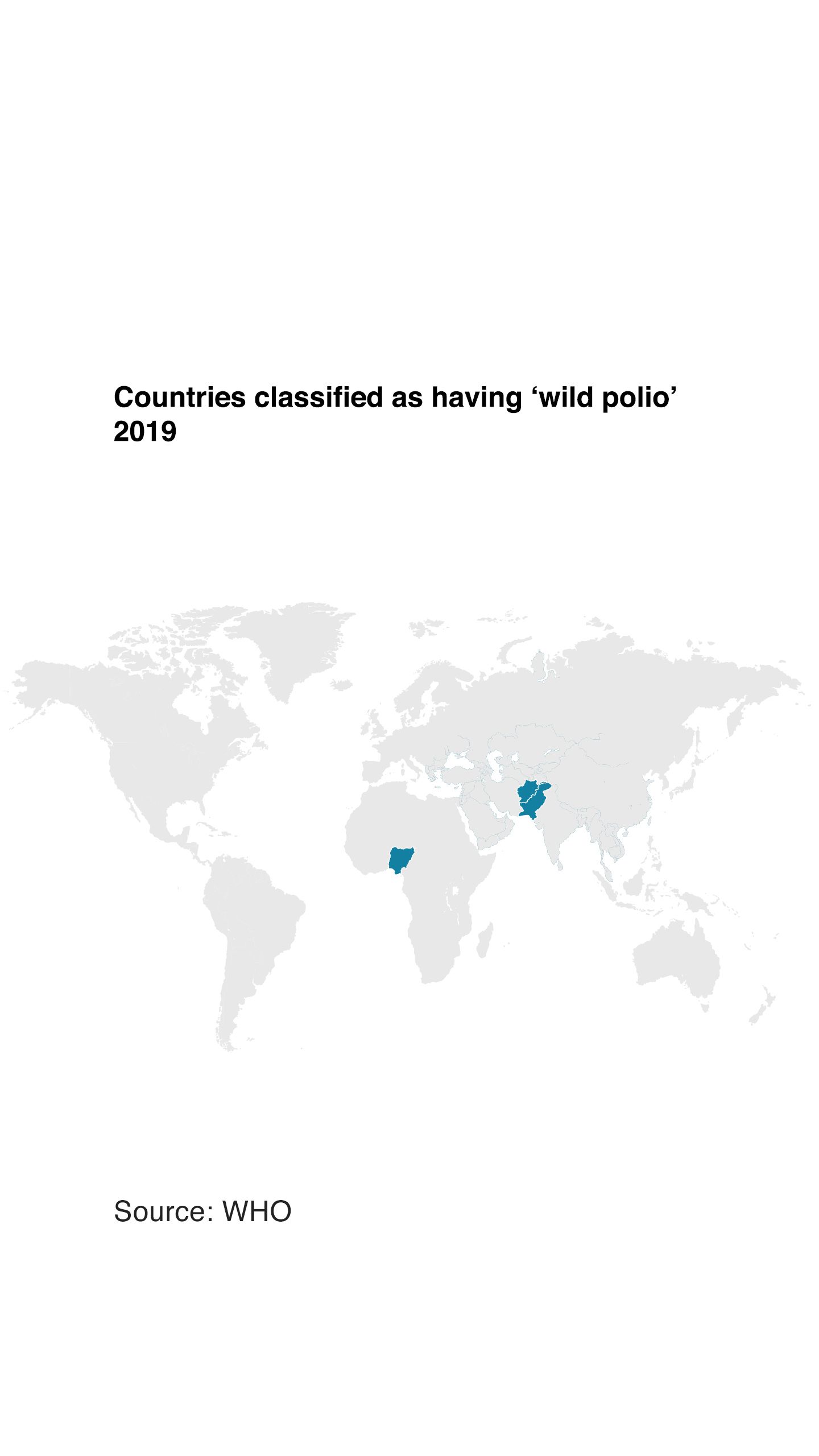 Vaccinations have been largely successful in eradicating it from the world, and only three countries are still home to endemic polio - Pakistan, Afghanistan and Nigeria. Nigeria, which has not had any cases since August 2016, is expected to be declared polio-free in the next few months.