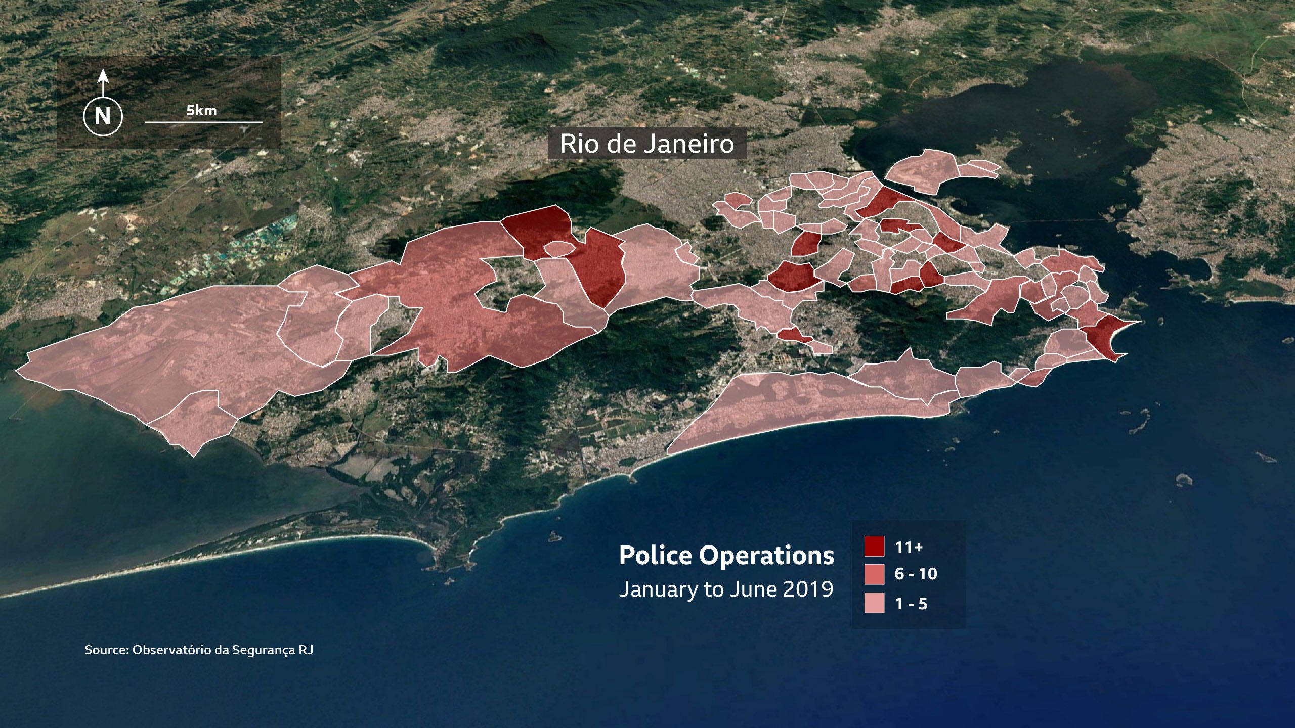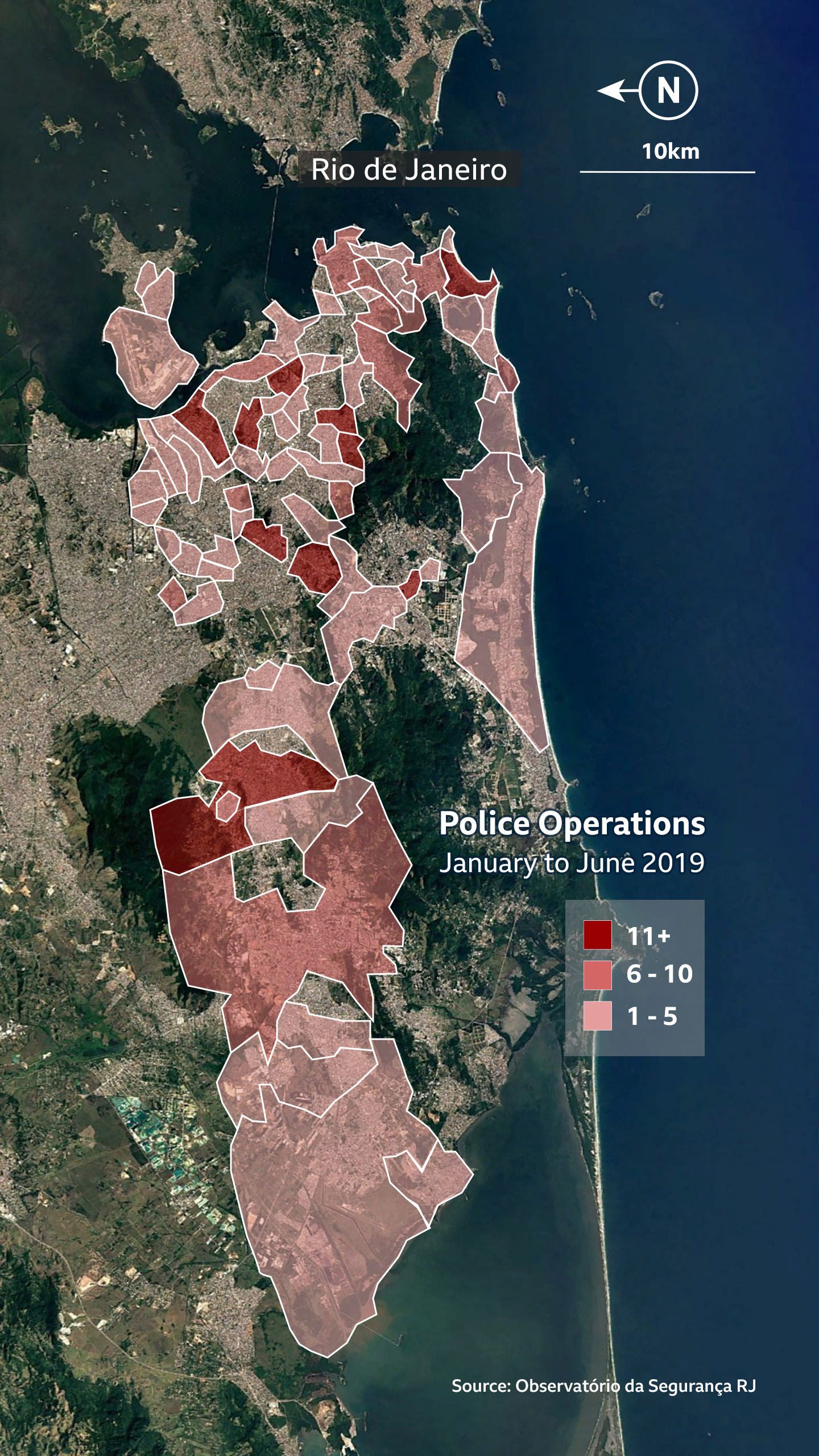 In May’s operation with the helicopter in Maré, police said they were looking for a suspected drug lord. Pictures of pupils fleeing a school as the police hovered overhead went viral. Eight people were killed in the raid, four of them in a single house.