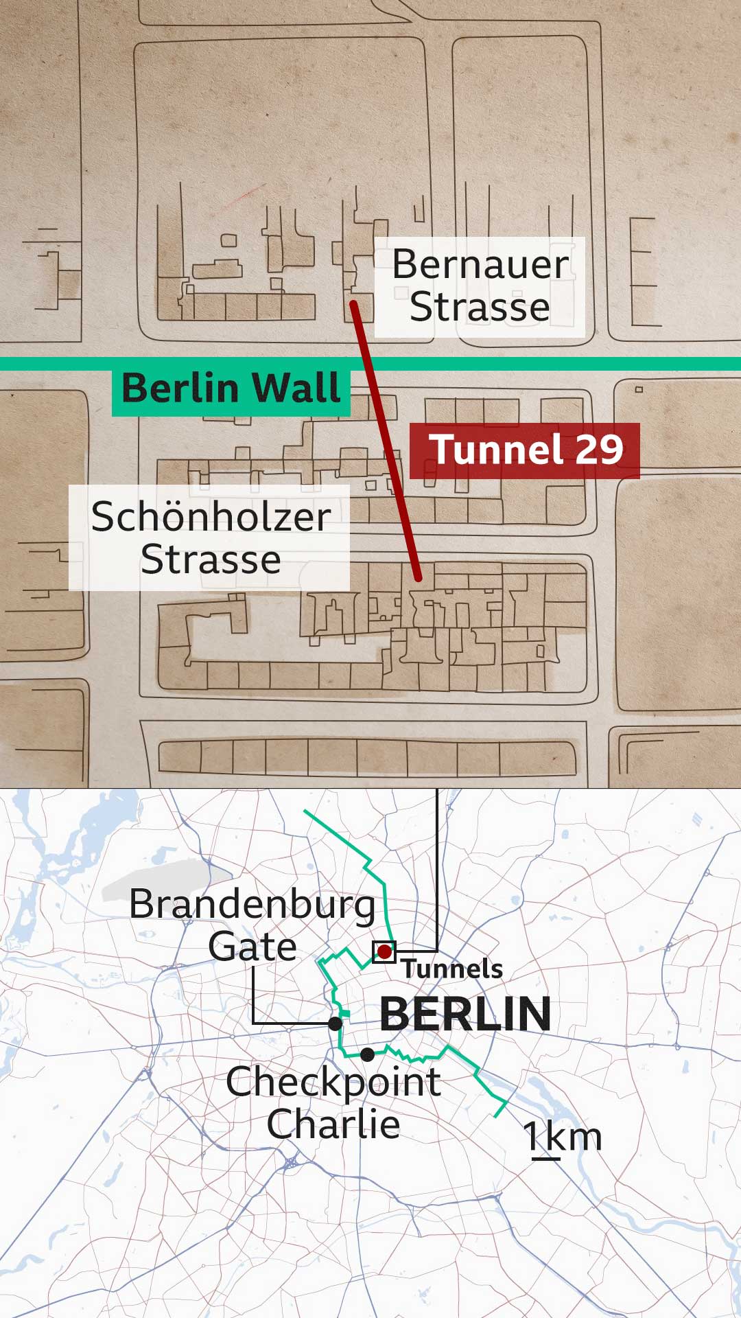 Using their maps, the tunnellers worked out they were now under Schönholzer Strasse, a street in the East that was so close to the wall it was patrolled by border guards.