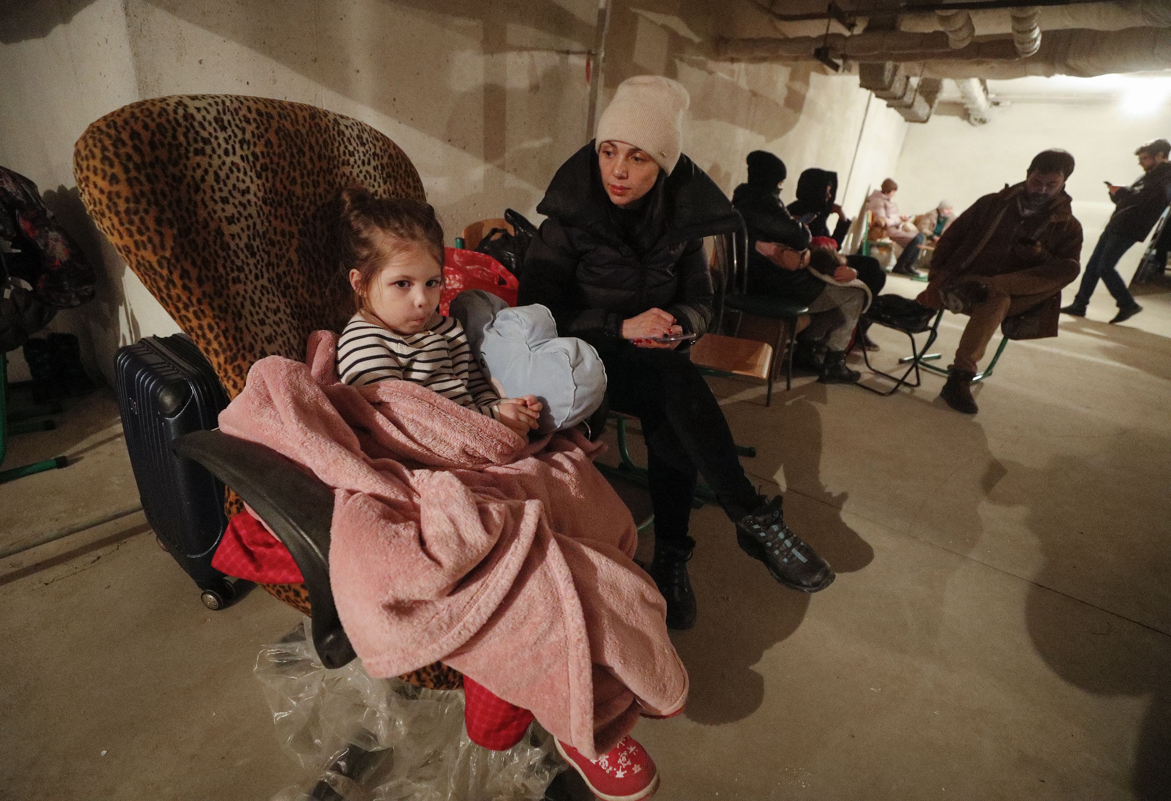 In neighbouring Poland, dozens of people, including children, have taken refuge at a train station in the town of Przemysl, just a few kilometres from the Ukrainian border.