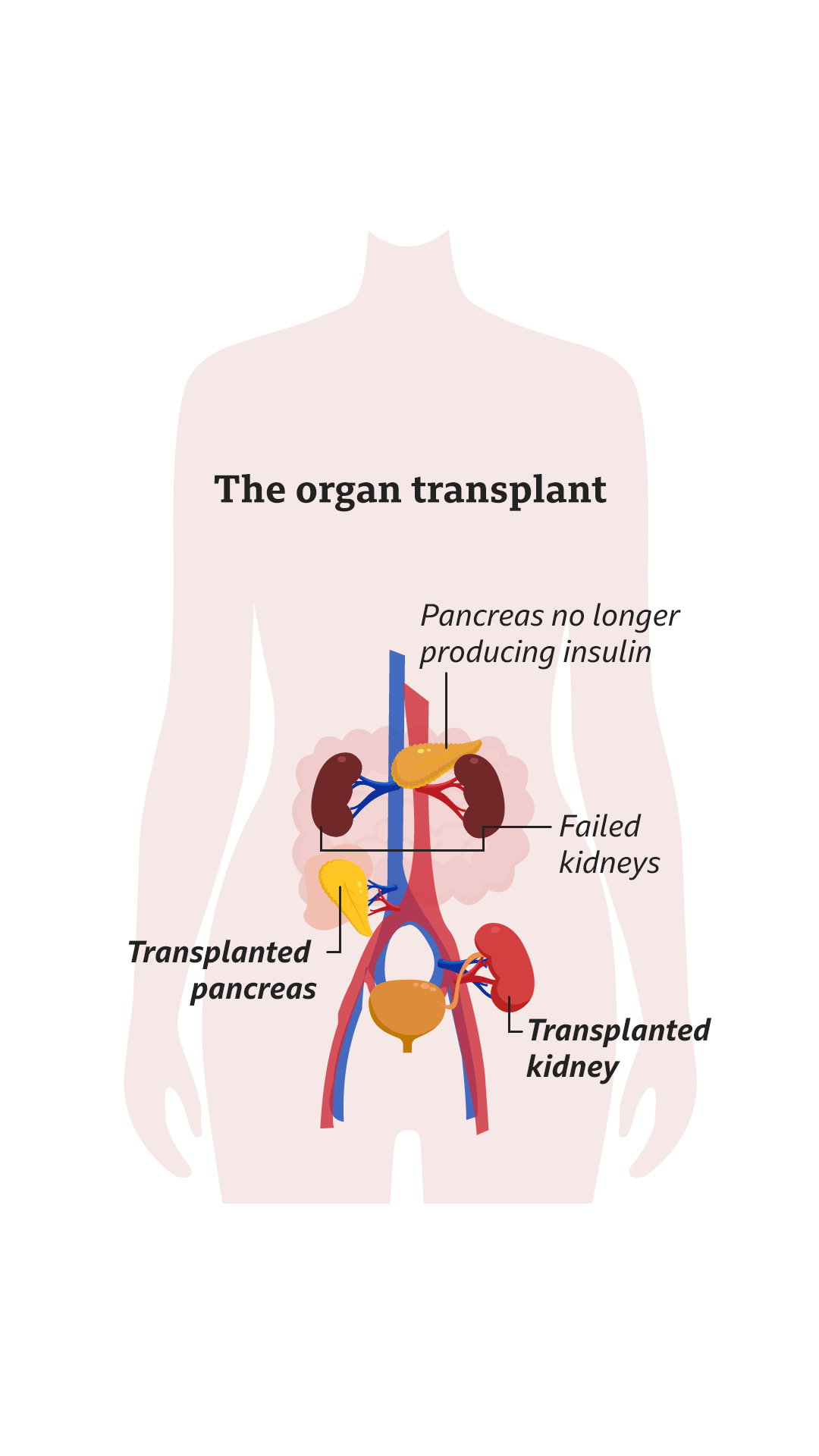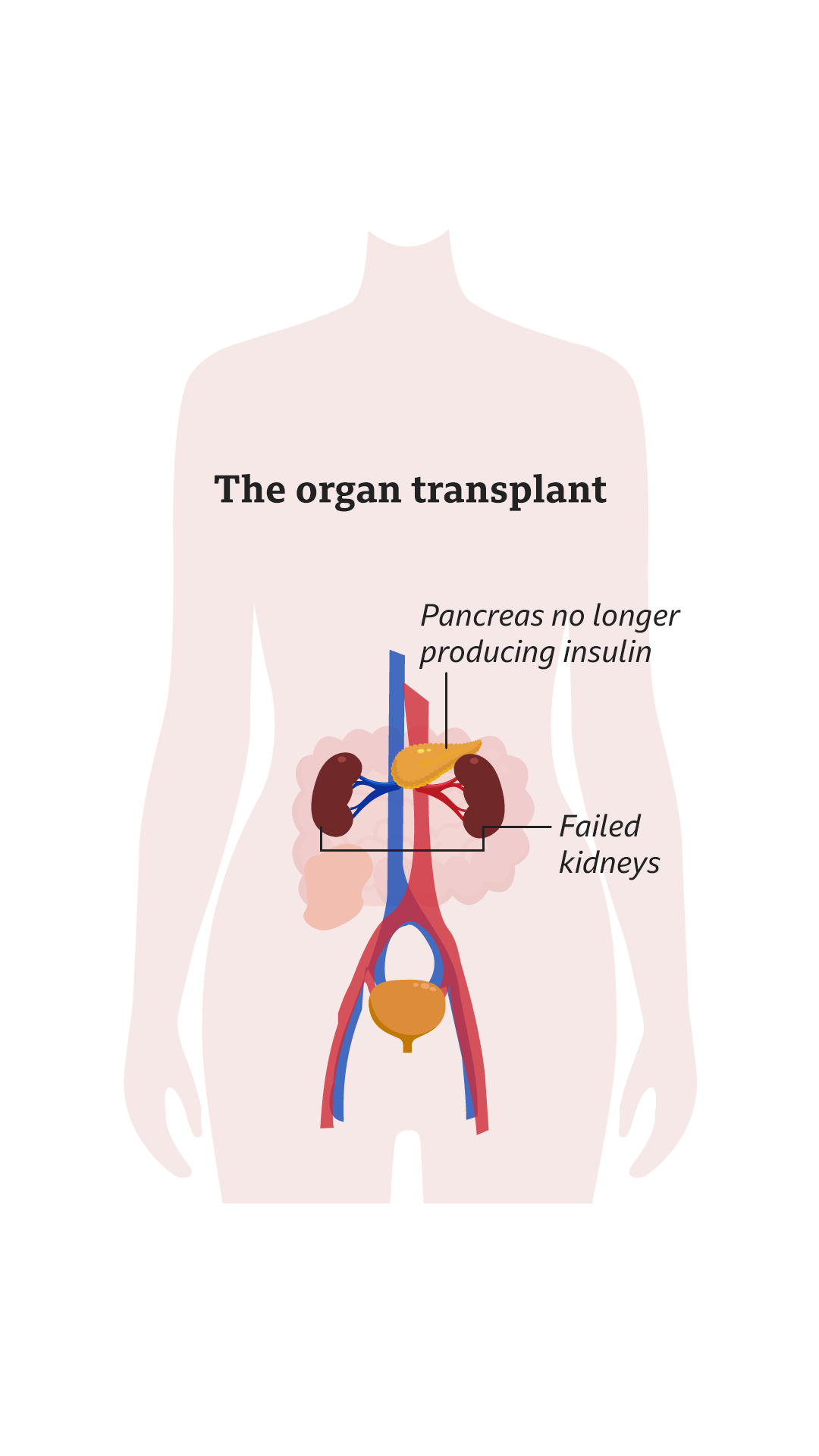 Emma’s kidneys were in a bad way by the time she was in her late 30s. But with type 1 diabetes, simply having a kidney transplant would be only a temporary measure. She needed a new pancreas as well, so that her body could start producing the insulin it needed on its own. Without the pancreas, any new kidneys would just become damaged in the same way.