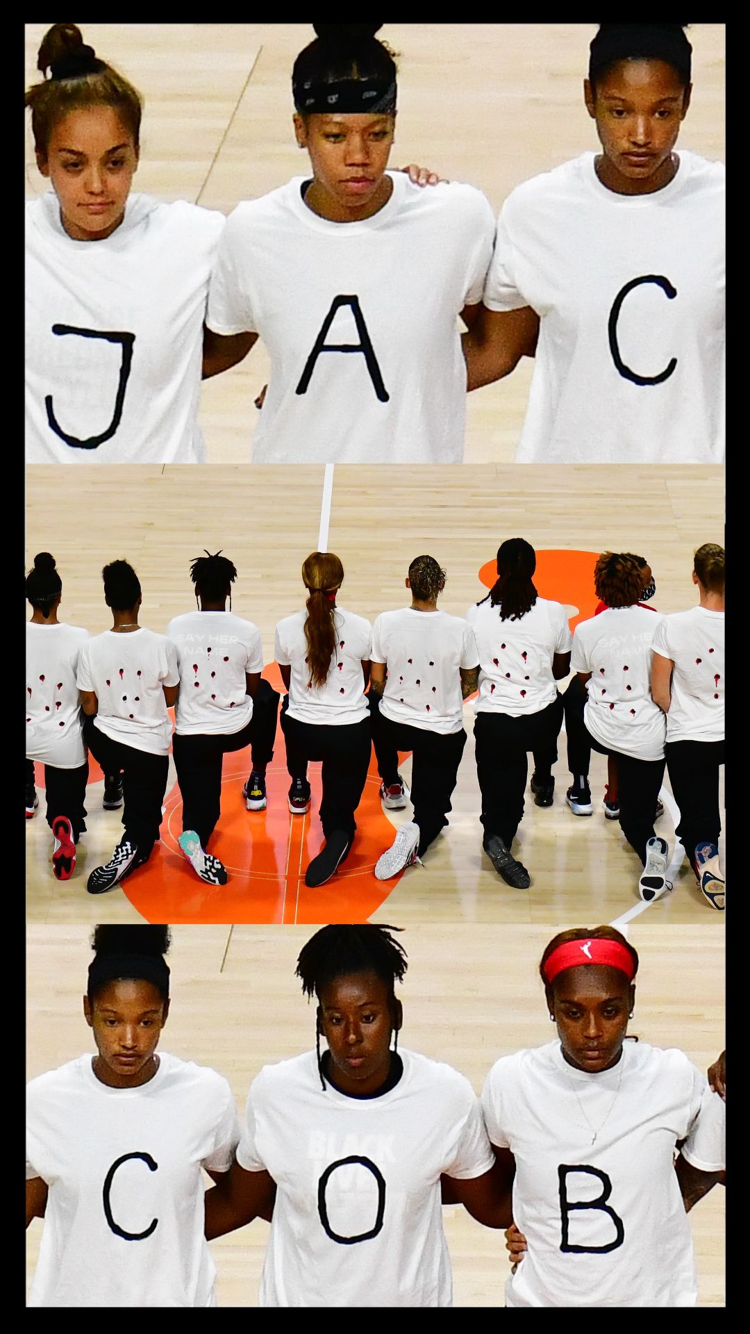 On 26 August, WNBA players from the Atlanta Dream and Washington Mystics protested against the shooting of Jacob Blake by wearing T-shirts with holes in them representing how many times he was shot by police.