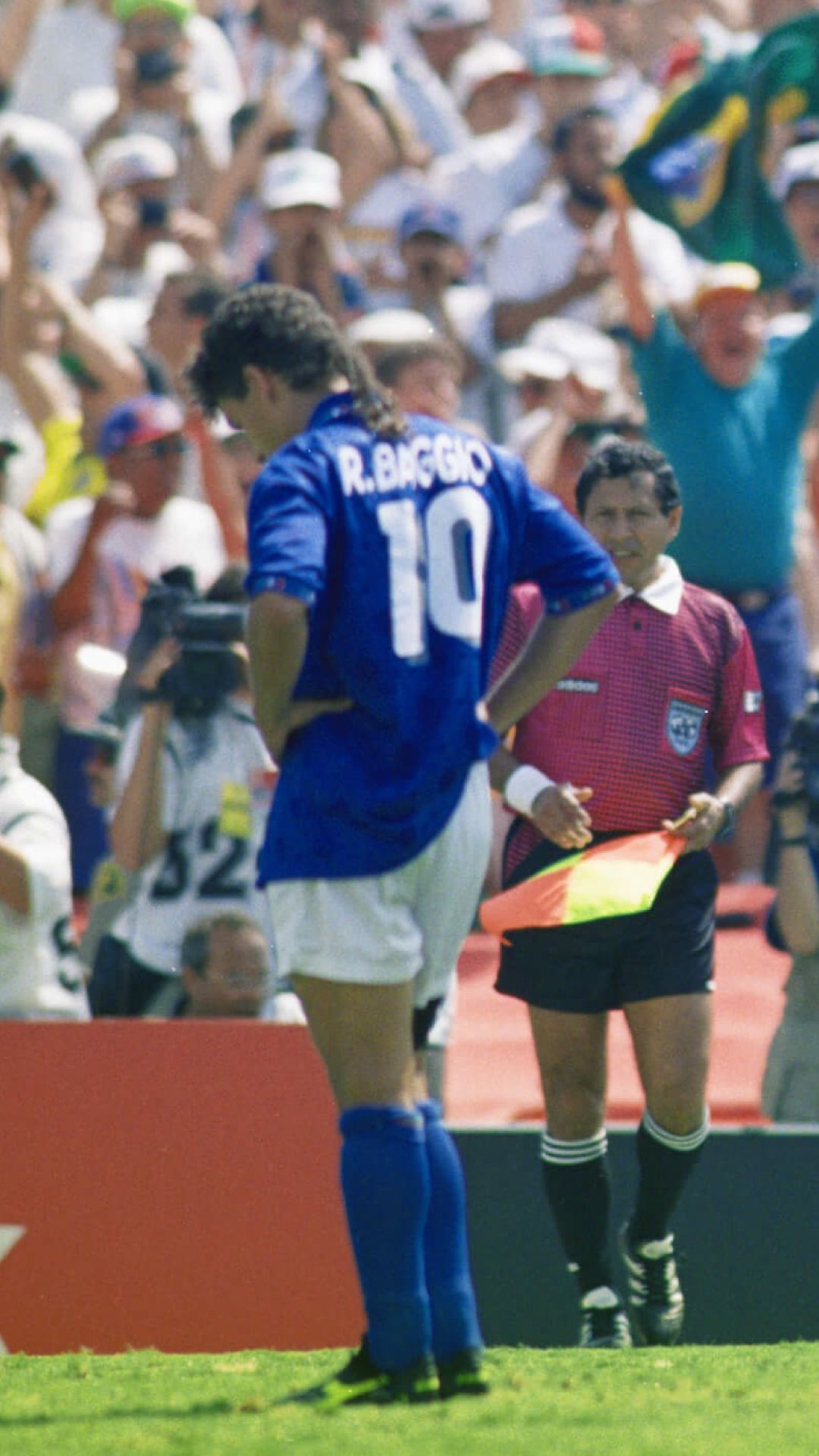 Both teams missed their first penalty, followed by two successful kicks each. When Daniele Massaro failed for Italy and Dunga netted for Brazil, it left Baggio having to score.