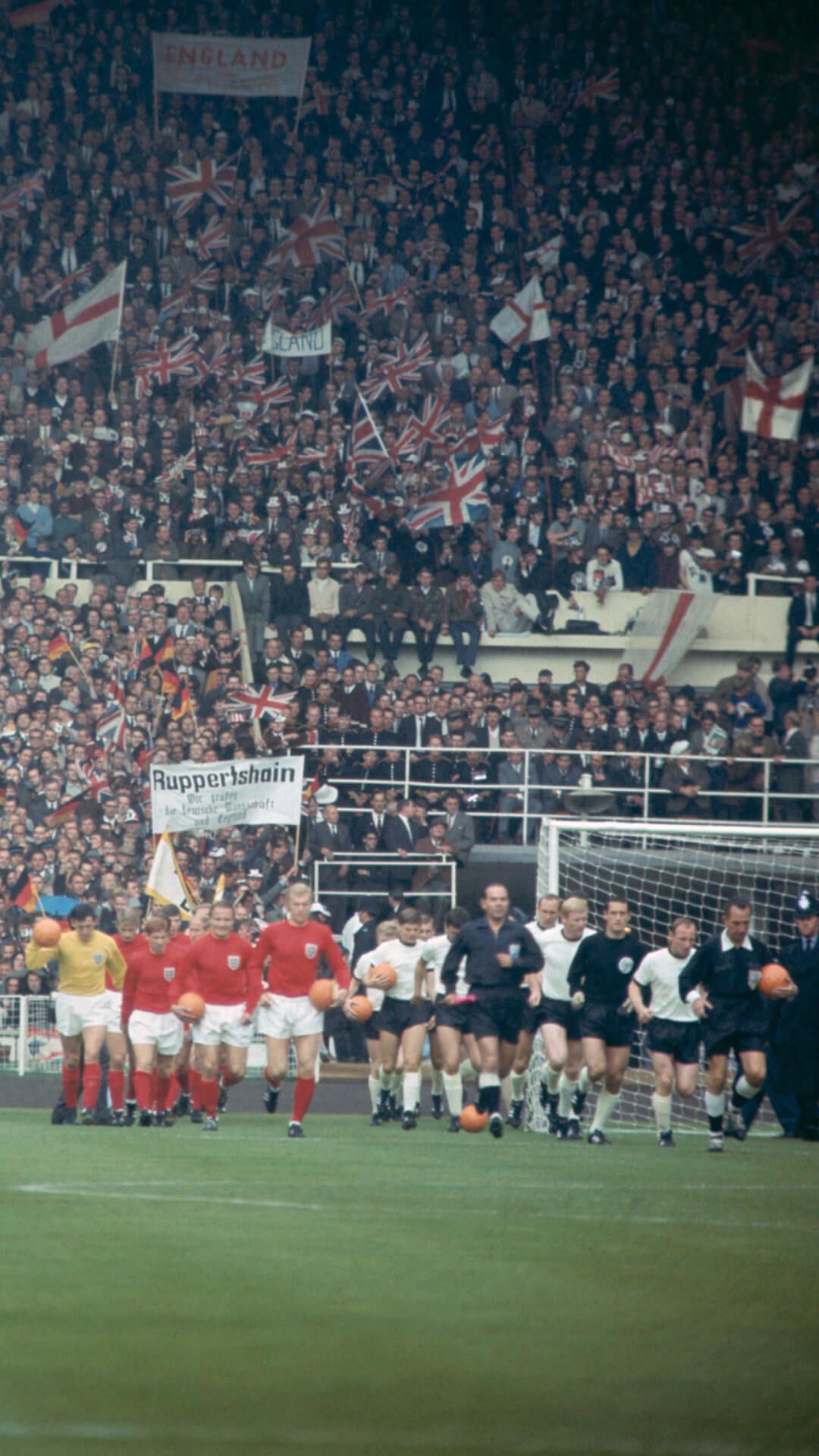 With 12 minutes to go Martin Peters thought he had given England victory with a strike to make it 2-1, but in the final minute Wolfgang Weber capitalised on a scramble in the England box following a free-kick to send the game to extra time.