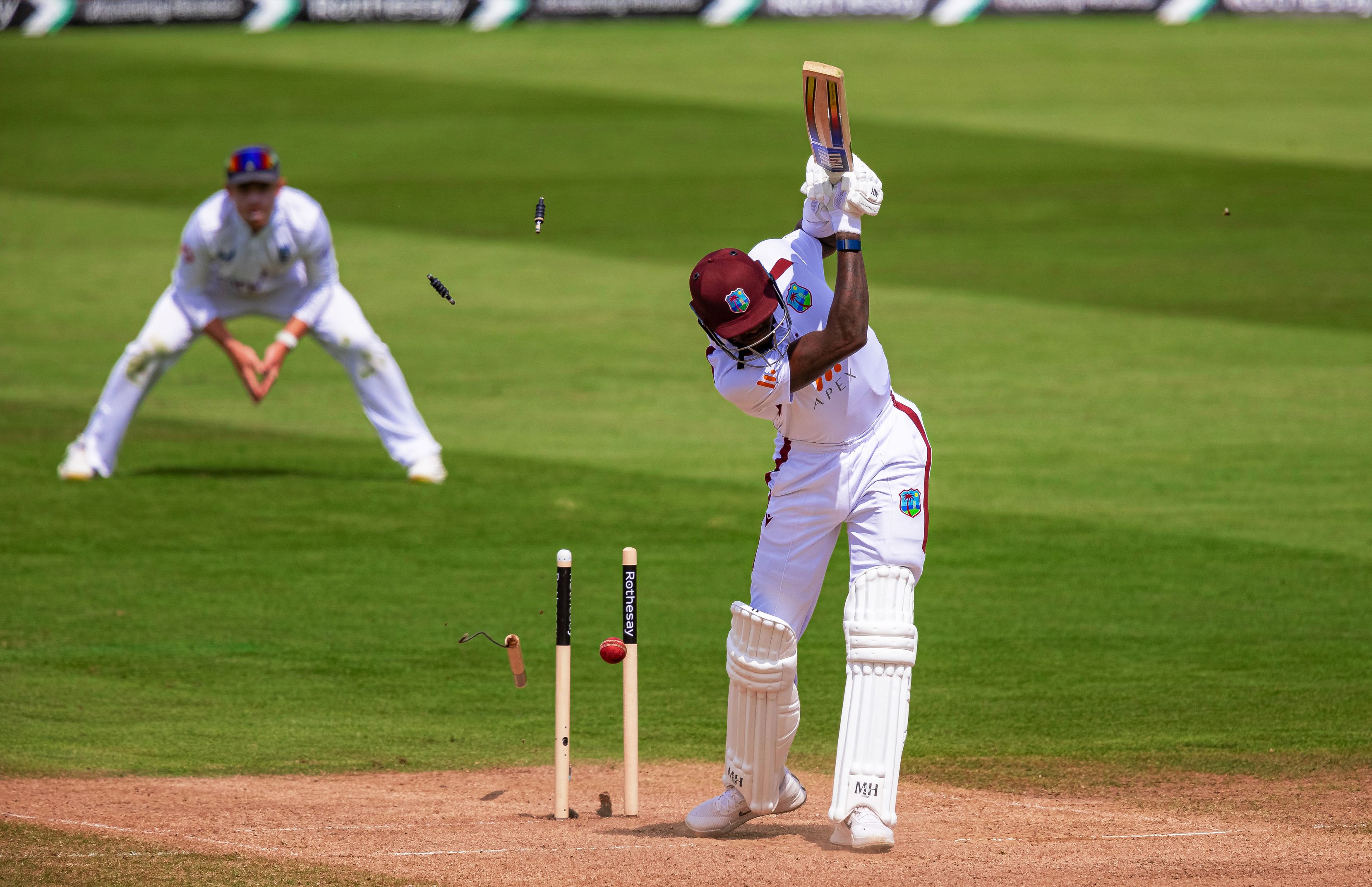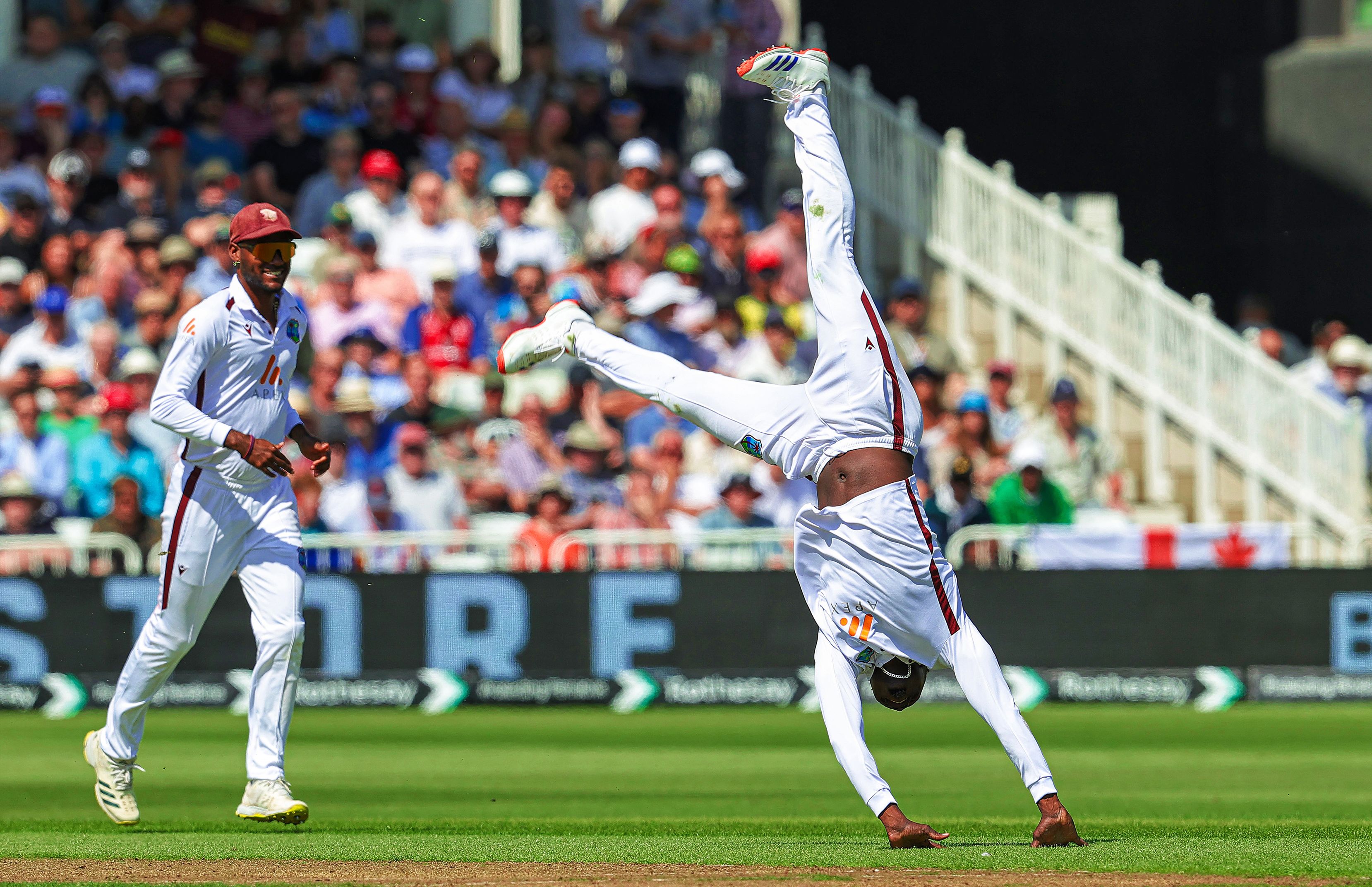 Stumps were sent flipping backwards, while West Indies spinner Kevin Sinclair did the same in the most eye-catching celebration of the summer.