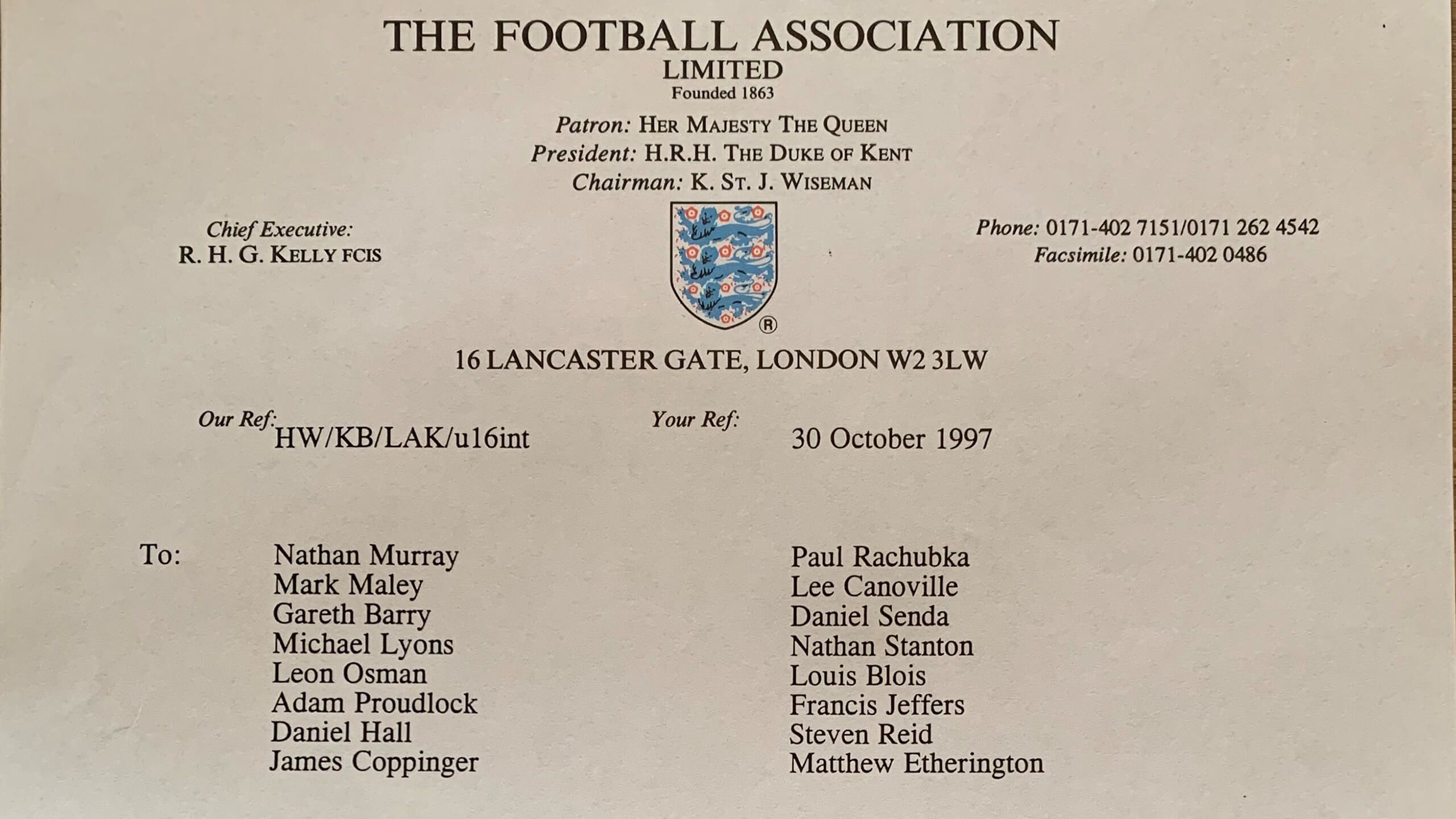 Less than four months into their YTS, in autumn 1997, Paul and James both received a letter from the Football Association. They were being invited to Lilleshall in Shropshire, then the home of England’s national academy, for three days of trials for England Under-16s.