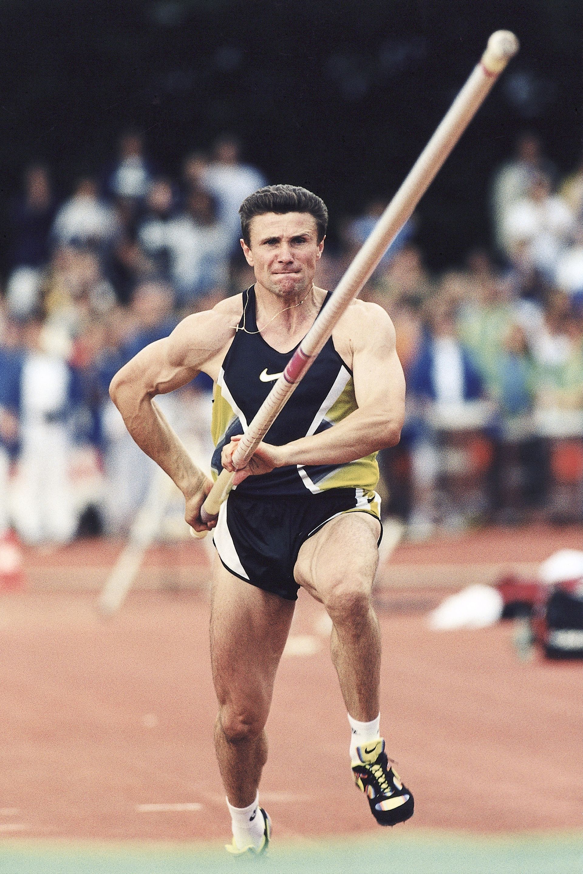 In 1984, Ukraine’s Sergey Bubka set a world record of 5.85m. It was the first of 17 times he would set a new global mark.