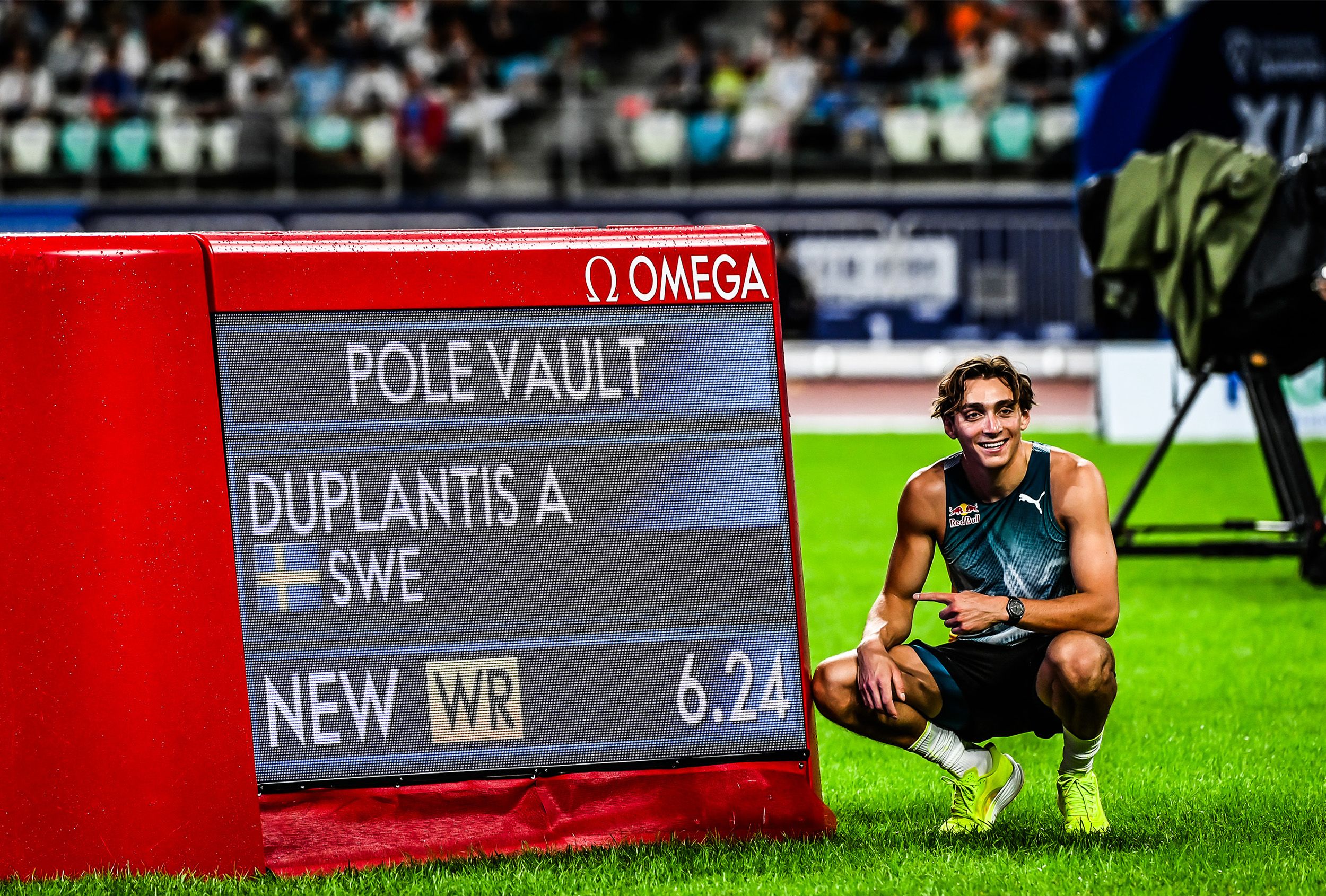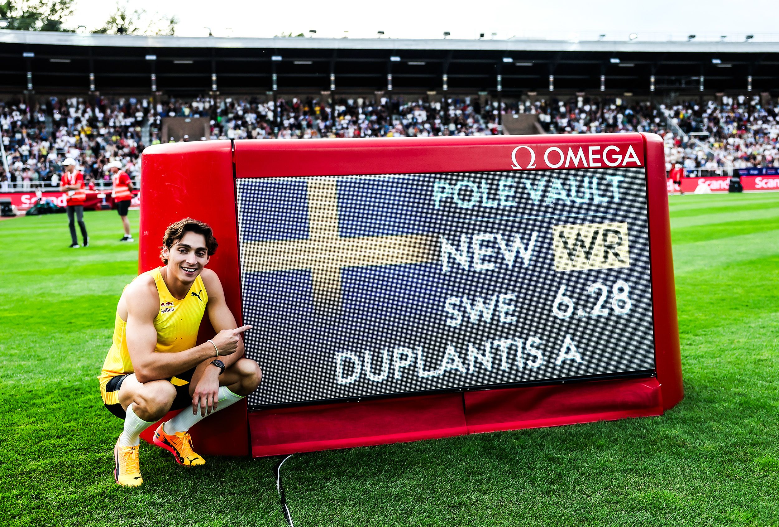 The images that follow are from when Duplantis set the world record for the 12th time by clearing 6.28m at the Stockholm Diamond League in June 2025.