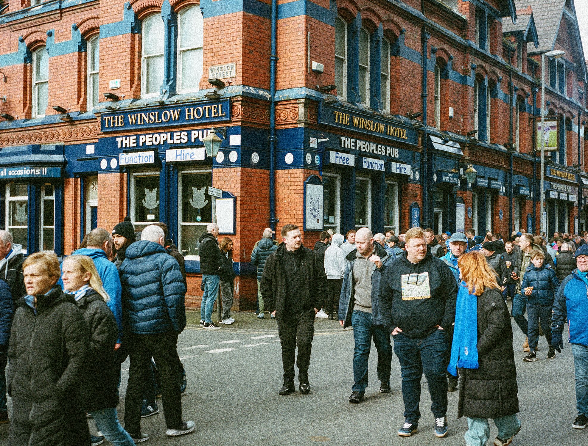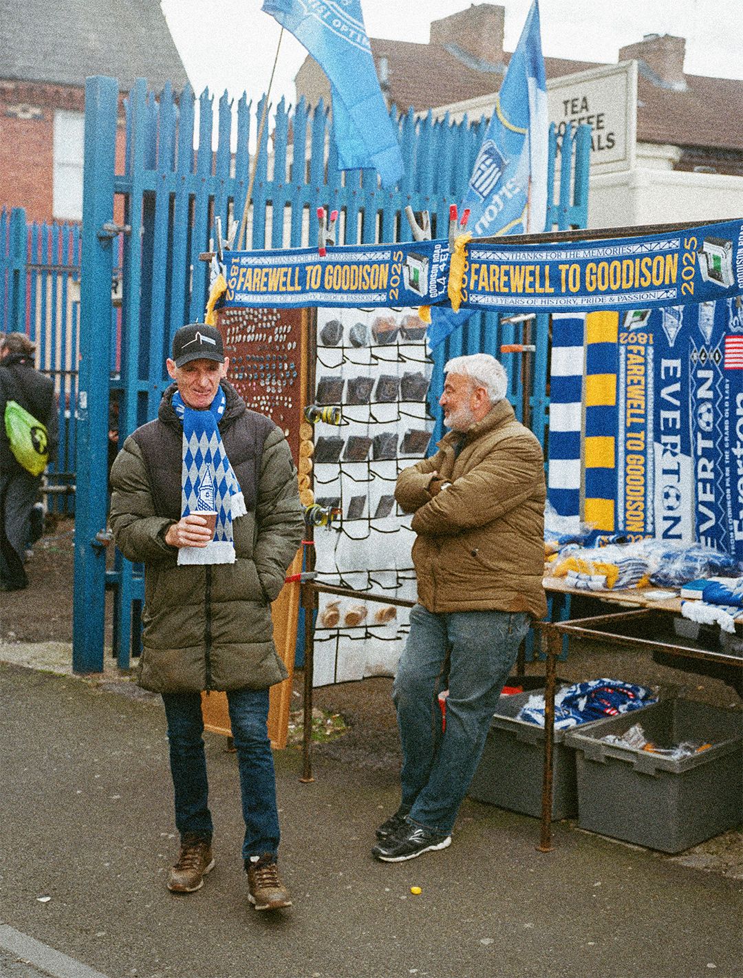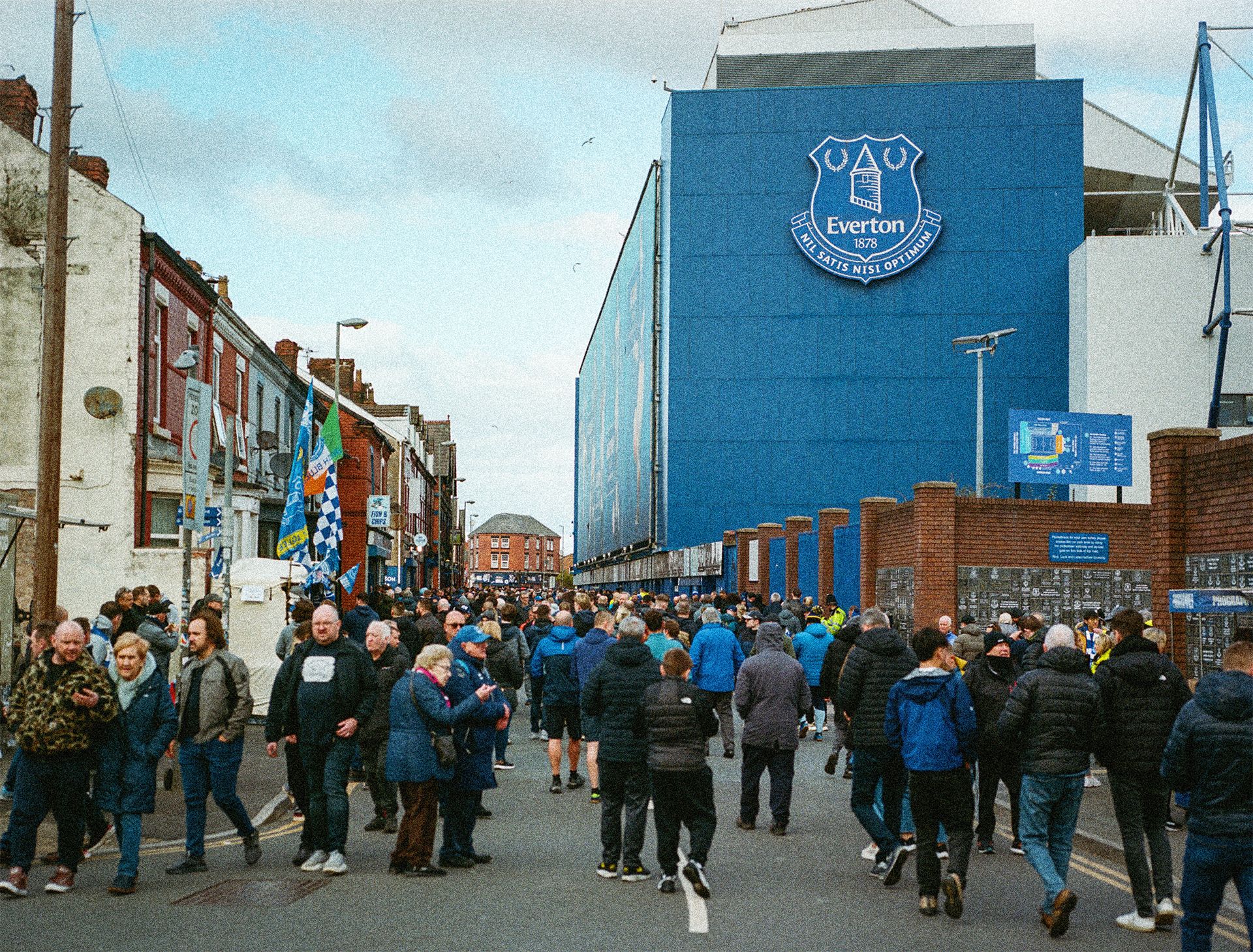Goodison is not just players, grass, bricks and mortar. It is also about people. The matchday ritual. Walking up streets of tightly spaced Victorian terracing; meeting friends and family by Dixie's statue; chips at the Goodison Supper Bar; a pint in the Winslow Pub in the looming shadow of the triple-decker Main Stand; perusing the memorabilia, old programmes and vintage shirts upstairs in the Church of St Luke the Evangelist, home of the Heritage Society, which is nestled between the Gwladys Street and Main Stand.